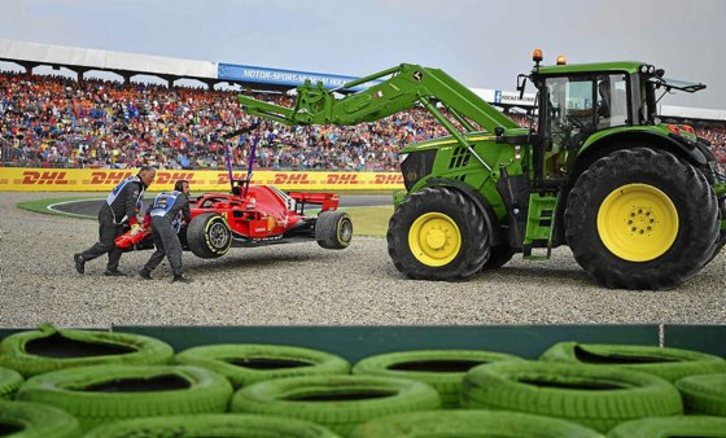 El Gran Premio de Alemania, que se disputaba en el circuito de Hockenheim, se encontraba en la vuelta 52 cuando el alemán, a apenas 40 kilómetros de su Heppenheim natal, lideraba la carrera de su país. Sin embargo, en un momento de incertidumbre por la lluvia –fue a más tras acabar la carrera–, el germano cometió un error, hasta tal punto de tirar la carrera, como el propio piloto admitió después, lo que no dudó en aprovechar un Lewis Hamilton (Mercedes) crecido con su gran re- montada desde la 14ª posición para no solo pasar a liderar y ganar la carrera, sino para subirse a lo más alto de la clasificación del Mundial de Fórmula Uno.