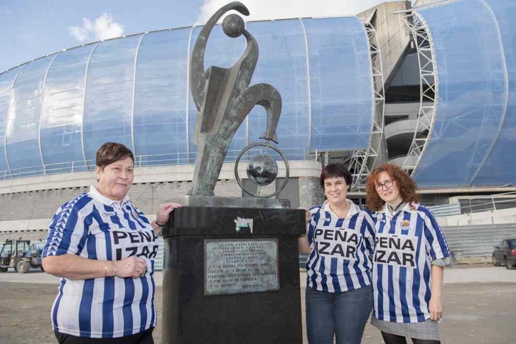 Tres de las componentes de la peña Izar que viajaron junto a Aitor Zabaleta para animar a la Real en el Calderón no olvidan al cumplirse veinte años de su apuñalamiento mortal una agresión que también ha marcado sus vidas y que recibieron solo por ser vascos.