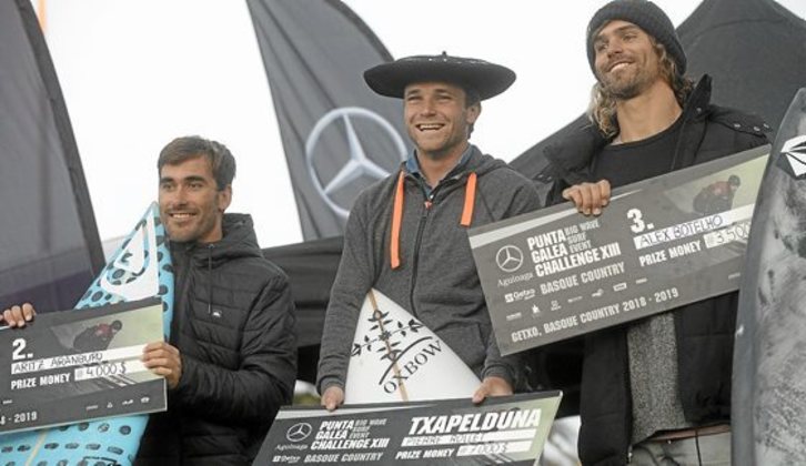 Segundo se clasificó el guipuzcoano Aritz Aranburu (15,70) y mientras que el portugués Alex Botelho (15,69), cuarto hace dos semanas en la competición disputada en la localidad portuguesa de Nazaré y que había superado a Rollet tanto en la preliminar como en la semifinal, acompañó a los dos vascos en el podio de la prueba.