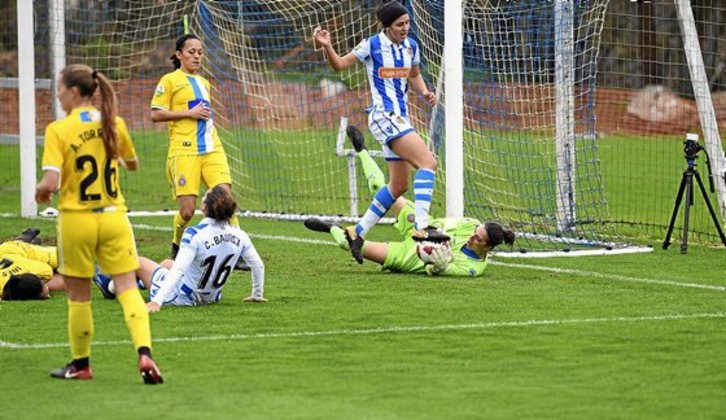 Las ganas se le notaron al equipo guipuzcoano desde el principio. Ante un Espanyol que no quiso arriesgar lo más mínimo pero que estuvo a punto de liarla con un disparo lejanísimo de Elba que Quiñones salvó in extremis, las donostiarras pusieron cerco a la portería de Mariajo. Nahikari, Marta Cardona, Manu, Itxaso..., las ocasiones se sucedieron pero el gol no llegó.