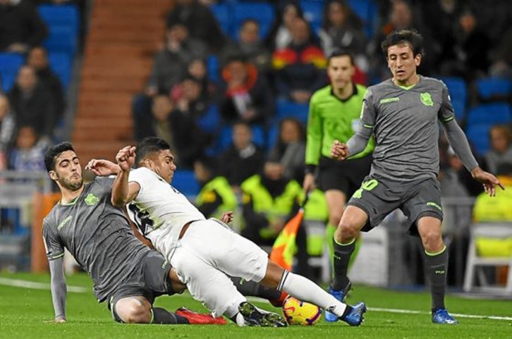Como suele ocurrir en los casos en los que se tumba a un rival de campanillas, lo habitual es que la marea mediática lo achaque más a los errores del perdedor que a las habilidades del triunfador. No lo vio así Mikel Merino, uno de los destacados en el Santiago Bernabéu, quien defiende que «tenemos todo el mérito de la victoria, pues somos conscientes de que lo que hemos hecho tiene mucha importancia, ya que a nivel futbolístico estuvimos muy bien».