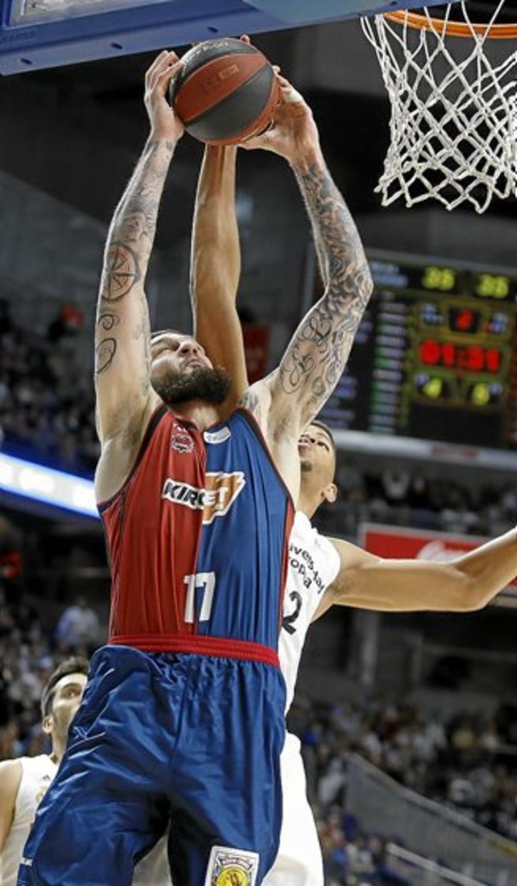 Si el viernes Perasovic apuntaba que el Real Madrid había conseguido que los gasteiztarras sintieran vergüenza de sí mismos, sobre todo en el partido jugado en diciembre –en el que los merengues se impusieron por 74-91 y Shengelia terminó lesionado–, ayer se puede decir que los gasteiztarras recuperaron el orgullo. «El Baskonia tiene muchas armas y, aunque no hemos tenido acierto, hemos sabido contestarles cada vez», se congratulaba Pablo Laso. Ciertamente, el entrenador gasteiztarra del Real Madrid debió sacar mucho jugo a los recursos de su plantel. Sobre todo en la primera mitad, los de Perasovic llevaron la iniciativa en el resultado. No consiguieron mantener la ventaja del 15-19 del primer cuarto, pero sí sometieron a un serio esfuerzo a los madridistas, para llegar al final de la primera mitad con empate a 35 en el luminoso.