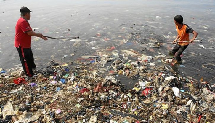 ‘‘Nature’’ aldizkarian agertu berri den ikerketa batek aditzera eman duenez, Ozeano Barean jada Estatu frantseseko lurralde osoa baino handiagoa den plastikozko «kontinentea» eratu da. Baina arazoaren neurria agian hobe irudikatzen du argazki honek; dozenaka arrantzale, poliziakide eta herritar xume, plastikozko hondakinak jasotzen atzo Lampung-eko badian, Indonesian.
