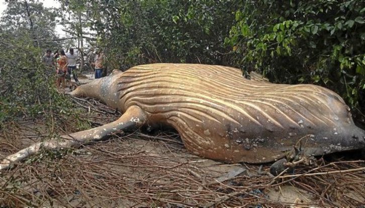 La impactante imagen de la ballena muerta aparecida «en pleno Amazonas» según algunas fake-news ha alcanzado gran viralidad. El misterio real no es que acabara ahí, dado que la costa está a apenas 15 metros aunque eso no se refleje en las fotografías más difundidas, sino en cómo llegó a esas aguas un cetáceo poco habitual en la zona, lo que remite a problemas más serios como el cambio climático.