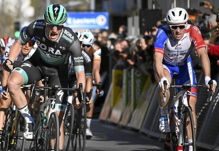 El sprinter del Bora remontó en los últimos metros a Démare y sumó así la cuarta victoria en su tercera prueba de la temporada tras imponerse en las últimas etapas de San Juan y el UAE Tour y en la cuarta etapa de París Niza en Yzeure. Además se vistió ayer el maillot verde.