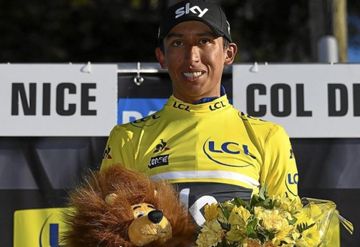 Egan Bernal (Sky) alcanzó ayer el maillot amarillo de la París Niza en la etapa reina con final en el col de Turini en medio de un festival colombiano en el que Daniel Felipe Martínez (Education First) se impuso a Miguel Ángel López (Astana), los más fuertes de una escapada de 39 corredores que se disputó la victoria. En la lucha por la general, Bernal y Quintana tuvieron el apoyo de otro colombiano, Iván Ramiro Sosa, para distanciar a Kwiatkowski y Luis León Sánchez y recortar la ventaja de Philippe Gilbert, la principal amenaza entre los escapados.