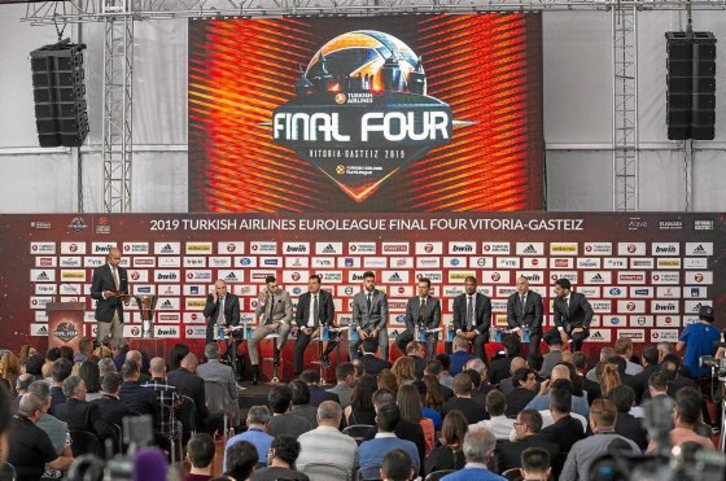 «Poca gente sabe que hace 19 años fue encargado de organizar la Final Four de 2001, pero en verano de 2000 pasaron muchas cosas. Gasteiz empezó entonces un largo viaje que ha terminado con esta Final Four de 2019», agradeciendo a las administraciones por su labor y su hospitalidad. «Ha sido una de las más emocionantes temporadas», dijo, dando a su vez la bienvenida a «dos nuevos socios: Villeurbane y Alba Berlín».