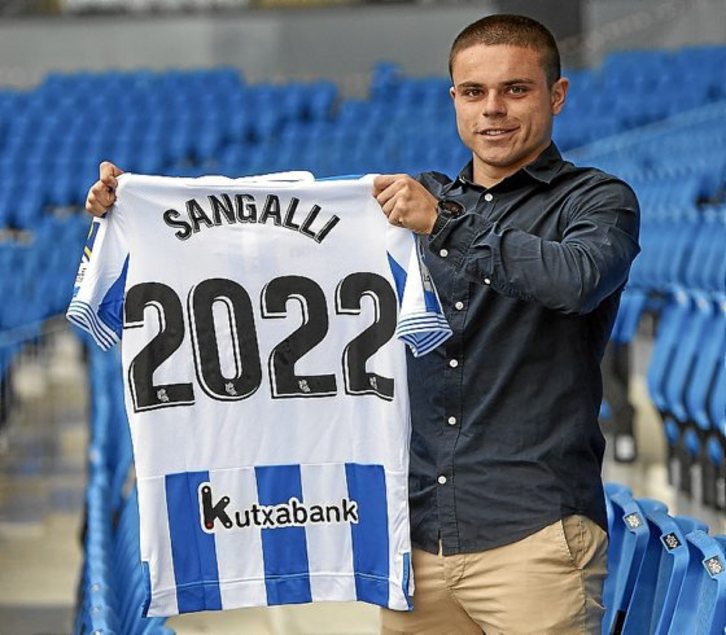 Luca Sangalli, uno de los futbolistas con mayor proyección de Zubieta, ha ampliado su compromiso con la Real hasta junio de 2022, dos años más de los que tenía hasta ahora firmados. El jugador se mostró «muy contento» por la renovación, tras una temporada que tildó de «muy rara», debido a la acumulación de experiencias «tanto positivas como negativas».