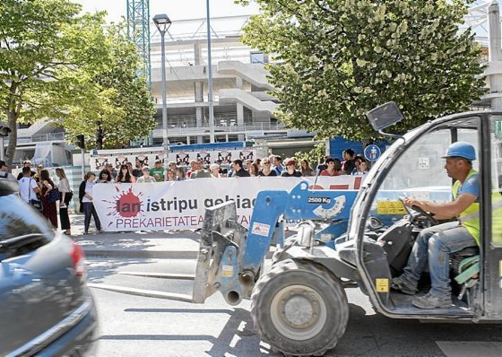 “Istripu gehiagorik ez. Prekaritatea hiltzailea” pankartaren atzean elkarretaratu ziren dozenaka lagun.