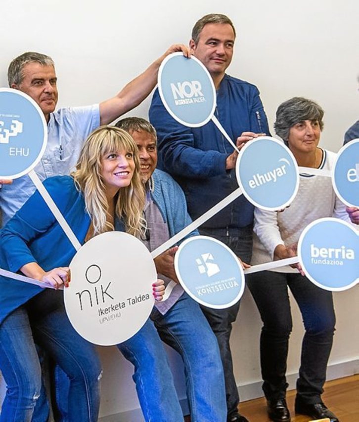 Bertan izan ziren Jon Zarate EHUko Euskararen eta Etengabeko Prestakuntzaren arloko errektoreordea, Estitxu Garai ikerketa proiektuaren zuzendaria, Paul Bilbao Kontseiluko idazkari nagusia, Joxemari Sors Elkar Fundazioko lehendakaria, Olatz Olaso Emuneko zuzendari orokorra eta Bea Zabalondo Berria Taldeko presidentea.
