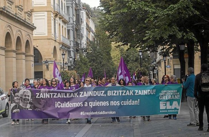 Gipuzkoako egoitzetako langileek greban jarraitzen dute datorren urtarrilaren 10era arte, baina, Aldundiaren aldetik gerturatzerik ematen ez bada, ELAk ez du baztertzen lanuzte gehiagorekin jarraitzea. San Tomas eguna baliatu zuten atzo gatazkaren berri emateko.