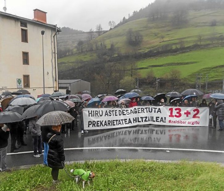 La mayoría sindical vasca se concentró ayer a la tarde para denunciar la sangría de 13 muertos en accidentes laborales en lo que llevamos de 2020 y que, tres semanas después del desprendimiento del vertedero, dos trabajadores siguen desaparecidos. En esa protesta, se informó de una carta en la que uno de sus compañeros denuncia que les habían suministrado materiales de autoprotección, «en muchos casos de protección inferior a la necesaria, sin indicaciones, sin un mínimo de protocolo para saber qué, cómo y cuándo hay que ponerse y quitarse los equipos, sin ninguna garantía».
