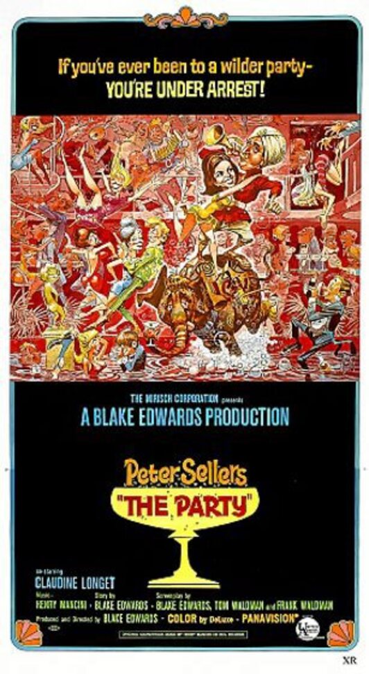 Es una de las mejores comedias de todos los tiempos, y da igual que la veas cinco, diez o más veces, porque siempre te vas a reir con las mismas ganas. No sé si eso equivale a la categoría de clásico, pero más de cincuenta años después de su realización sigue sin ser superada, porque fue irrepetible desde el preciso instante en que nació. Blake Edwards y Peter Sellers colaboraron de forma asidua en la franquicia “La Pantera Rosa” sin lograr nunca brillar al mismo nivel de excelencia cómica que en “The Party” (1968). Resulta curioso que el humor gestual de la película y el personaje de Hrundi V. Bakshi no remiten tanto al inspector Clouseau como hubiera sido de esperar, sino al Monsieur Hulot creado por el genial Tati en una dinámica de cine mudo y que aquí es conectada con la tradición del slapstick en la sucesión de gags perfectamente encadenados que no dan tregua al espectador. Imposible olvidar al extra que se resiste a morir, el baño de espuma, la silla baja en la mesa, el pollo ensartado en una peluca, el elefante pintado, el loro, los músicos rusos, el chorro de la fuente, los accidentes por el mal uso de la domótica, el riego automático, la chimenea en llamas, los servicios ocupados, etc.