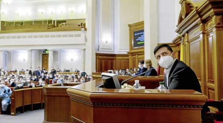 Protegidos con máscaras y guantes con motivo de la epidemia del coronavirus, 259 diputados votaron a favor de esta reforma, saludada como «histórica» por la Presidencia ucraniana.