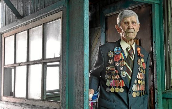 Atzo ateratako argazkian, Petr Polomoxnov ageri da, 95 urteko kirgizistandar beteranoa. Egunotan, Garaipenaren Eguna ospatzen ari dira SESB osatzen zuten estatuetan. Mendebaldeak «ahaztu» egin ohi du Bigarren Mundu Gerran Sobietar Batasunak nazien kontrako borrokan izan zuen papera eta ordaindu zuen prezioa (datu ofizialaren arabera, gerran bere biztanleen %13,7 hil ziren).