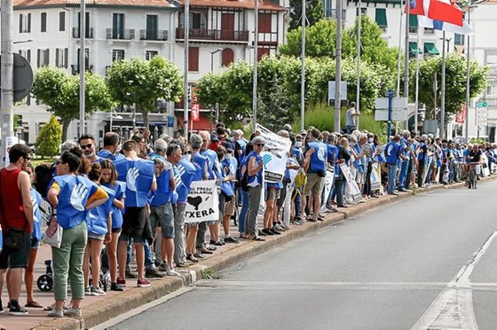 Espetxean 30 urte daramatzan Donibane Lohizuneko presoa aske utz dezatela eskatzeko Bake Bidea mugimendu zibilak atzo egin zuen giza katearen amaieran, «prozesua biziki kinka larrian» dagoela eta «bake prozesuaren aurkako sabotajea» ez dutela onartuko adierazi zuten bake artisauek.Bob EDME