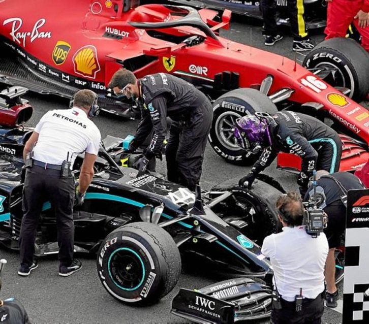 Entre la maniobra del de Red Bull –único que pudo seguir a distancia el frenético ritmo de los Mercedes– y que al compañero de escudería del de Stevenage le sucedió el mismo incidente –Valtteri Bottas también pinchó apenas un minuto antes–, fue el actual campeón el que más favorecido salió de una esperpéntica situación que le pudo costar bien cara al equipo británico.