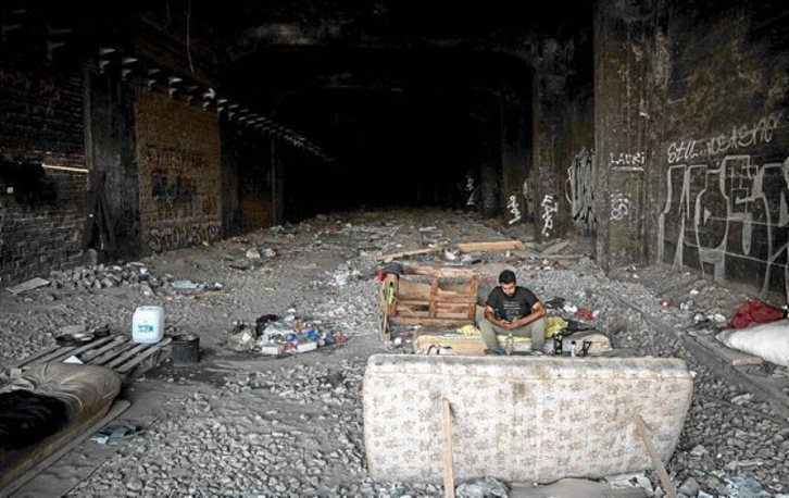 Argazkian, Alemaniarako bidean den Siriako migratzaile bat abandonatutako trenbide-tunel batean atseden hartzen ari da, Belgraden. Orain bost urte ehunka mila migratzailek eta errefuxiatuk Balkanak zeharkatu zituzten ihesean. 2016ko Bruselaren eta Turkiaren arteko akordioa baten ondorioz, ibilbidea «itxi» egin zen ofizialki. Baina, berez, etorkinen mugimendua ez da inoiz eten.