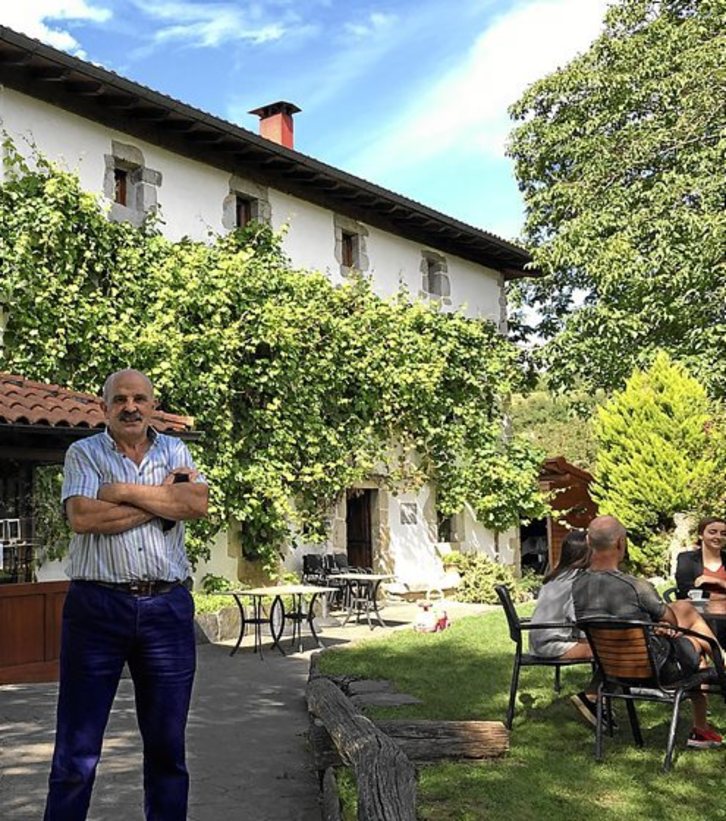 Mahasti handi batek estaltzen duen etxearen atarian ongietorria eman digu Migel Anjel Uzkudunek, orain dela hamabost urte Aranburu baserria goitik behera berriztatu eta bertan landetxea jartzea erabaki zuen gizonak hain zuzen. «Gu maizterrak ginen hemen 30eko hamarkadaz geroztik eta 1990an etxea erosi genuen. Hamaika senidetatik ni izan nintzen azkena geratu nintzena eta 2005ean landetxea jartzea erabaki nuen. Urtebeteko lanen ondoren, sei gela eta jatetxea dituen landetxea zabaldu genuen», dio Migel Anjelek.