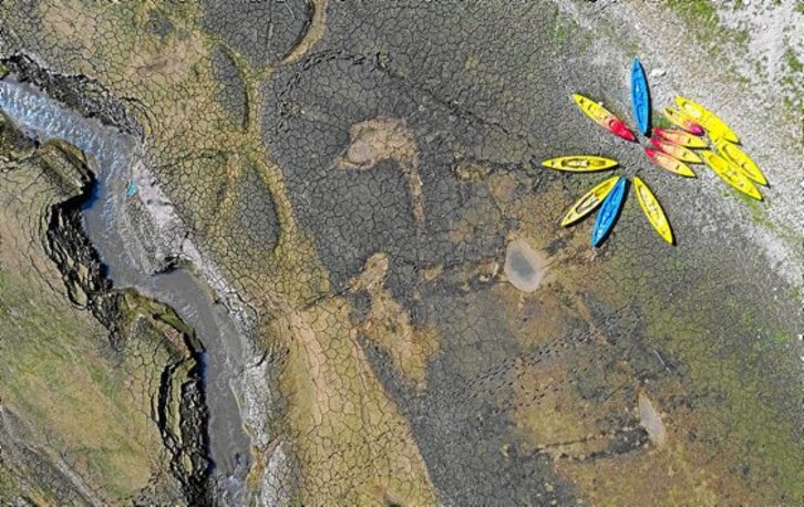 Doubs ibaia Villers-le-Lac-en, dago, Frantziako ekialdean. Uda honetan, lehortearen ondorioz, ibaia errekasto bilakatu da; argazkiko piraguak ikusita, badirudi Doubs ibaian egin daitekeen gauza bakarra oinak freskatzea dela. Aurtengoa ipar hemisferioan erregistratutako udarik beroena da. Klimak alarma seinaleak igortzen jarraitzen du. Oraingoz alferrik, ordea.