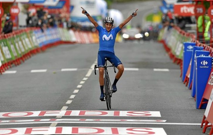 Pocas veces una victoria es tan justa como la que logró Marc Soler en la segunda etapa de la Vuelta disputada entre Iruñea y Lekunberri porque Movistar tiró en todo momento en cabeza del pelotón y el catalán fue el encargado de hacerlo en el alto de San Miguel de Aralar que se coronaba a 17 de meta para dejar por delante a los diez más fuertes de la carrera, a los que sorprendió en el descenso para llegar en solitario a la meta.