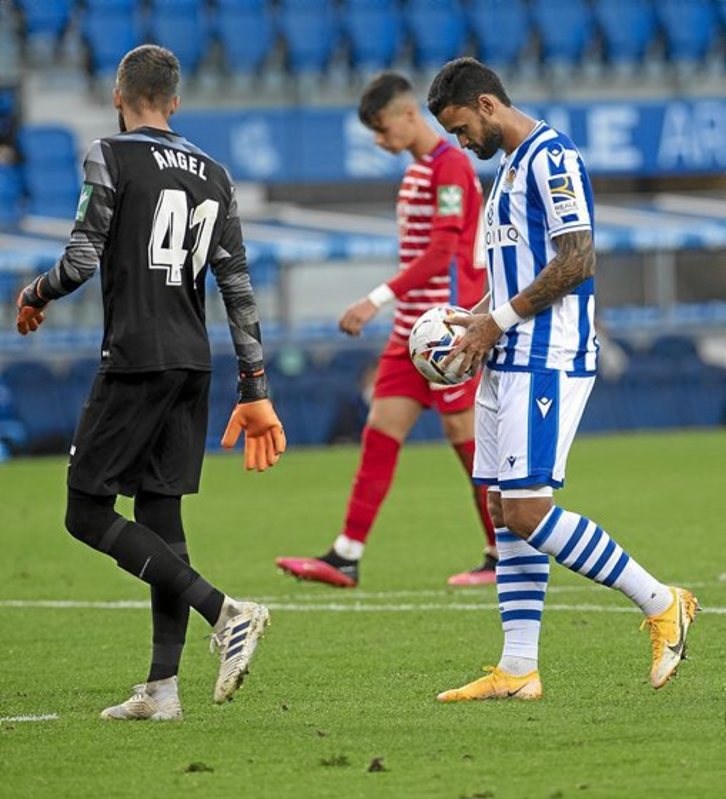Imanol aisló a sus jugadores de todo lo anormal que rodeaba el encuentro, presentó un buen once con la primera titularidad de Zaldua de la temporada y sus jugadores comenzaron como lo hacen siempre. Así se vivió un monólogo de 75 minutos porque el Granada no era un equipo, sino once jugadores nada compenetrados, algunos sin estar en condiciones y en posiciones que ni conocían. El mejor fue el portero juvenil Ángel, que impidió que la Real lograra una goleada y no solo por detener un penalti que no debió tirar Willian José en la segunda parte.