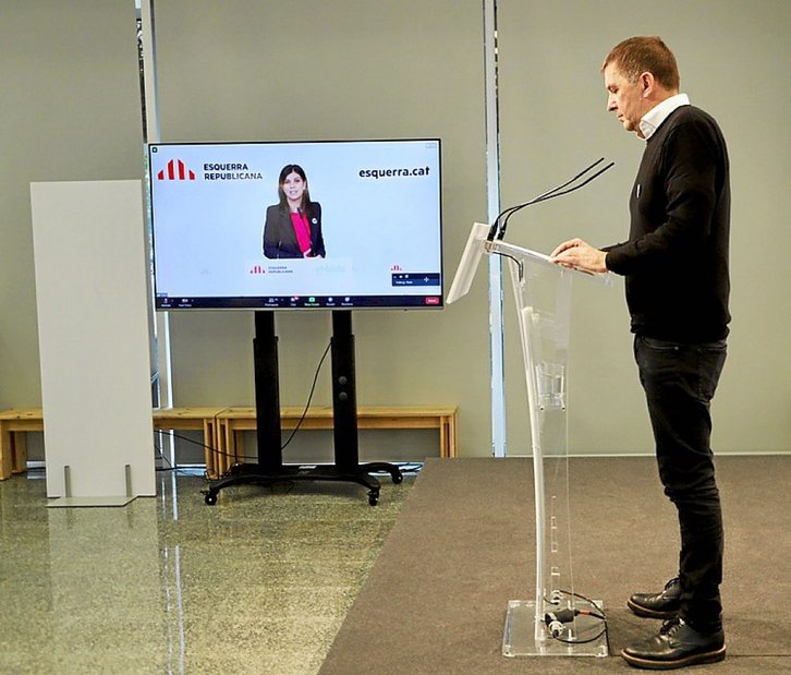 El coordinador general de EH Bildu, Arnaldo Otegi, y la secretaria general adjunta y portavoz de ERC, Marta Vilalta, compartieron ayer una rueda de prensa telemática conjunta en la que resumieron los argumentos por los que ambas formaciones independentistas van a respaldar los Presupuestos del Gobierno español. El primero se encargó de hacerlo en euskara y en castellano, y la segunda en catalán.