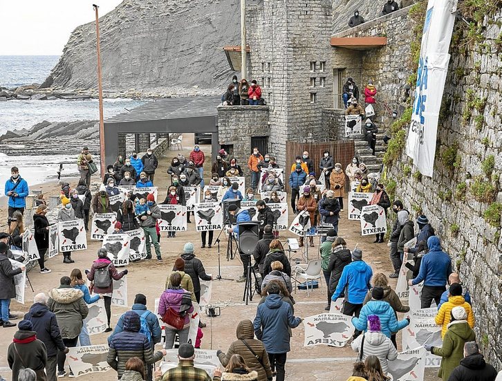 Itzurun hondartzan euskal presoak eta iheslariak etxera ekartzea eta dispertsio politikarekin amaitzea eskatzeko argazki erraldoia egin zuten atzo zumaiarrek. 250 pertsona batzeko erronka jarri zuen antolakuntzak aurreko egunetan, eta 300 inguru izan ziren azkenean, gehienak presoak etxeratzearen aldeko banderolak eskuetan. Argazkia ez ezik, bi pankarta erraldoi ere jarri zituzten hondartza atzeko murruan. Bata, aurtengo lemarekin, “Bidea gara. Bidean gaude”; bestea, klasiko bat: “Preso eta iheslariak etxera”.