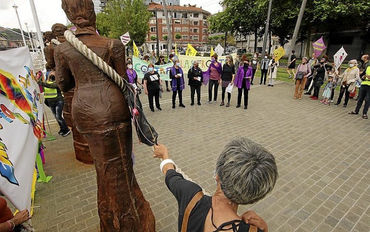 Emakumeek eta LGTBQI+ kolektiboko kideek migrazio prozesuan eta politika migratzaileen ondorioz jasaten dituzten indarkeria egoerak salatzeko mobilizazioa egin zuten atzo Bilbon. Gogoratu zutenez, gainera, migratzera bultzatzen dituzten arrazoien atzean ere indarkeria egoera horiek izaten dira maiz.