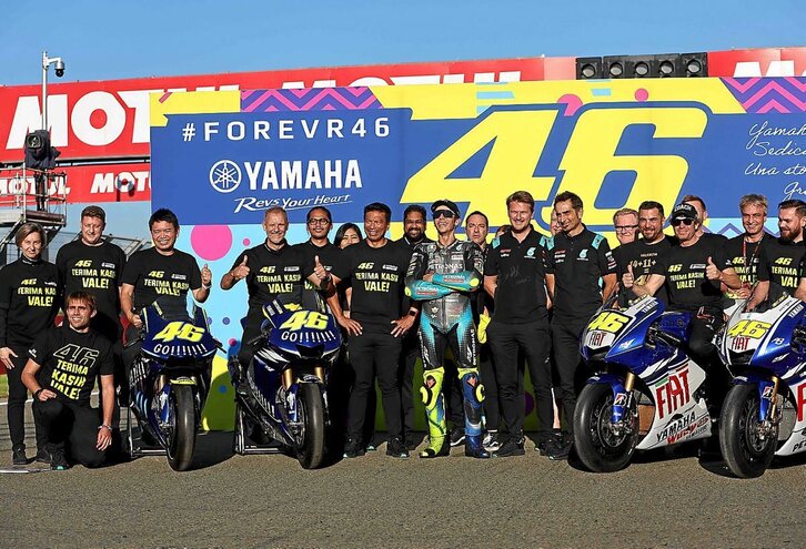 El piloto italiano puso punto y final a su carrera deportiva en el circuito de Cheste, después de 432 grandes premios y 26 temporadas en las que ha logrado nueve títulos mundiales –uno de 125 c.c en 1997, otro en 250 c.c. en 1999 y siete de 500/MotoGP en 2001, 2002, 2003, 2004, 2005, 2008, 2009–. Rossi consiguió cautivar a los aficionados con su icónico número 46 gracias a sus celebraciones, su espectacularidad sobre la pista y su particular manera de hacer las cosas.