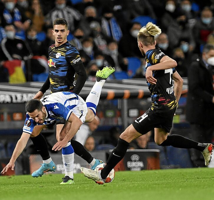 Real y Osasuna disputan hoy un derbi marcado por el partido del jueves del equipo blanquiazul contra el Leipzig, que además del desgaste y el golpe moral de la eliminación aumentó la lista de bajas. Además de la prevista de Januzaj, Joseba Zaldua y Rafinha, con molestias en el recto femoral izquierdo, no pudieron entrar en la convocatoria de Imanol, que sí recuperó a Merino tras recuperarse de la conmoción cerebral sufrida en San Mamés que le impidió jugar contra el equipo alemán.
