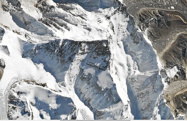 El monte Everest, captado sin nubes desde el espacio