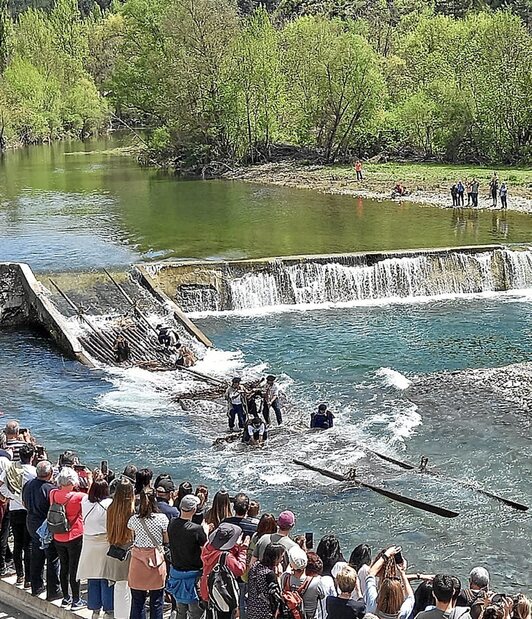 Pandemiak derrigortutako bi urteko etenaren ondotik, Almadiaren Egunaz berriro gozatu ahal izan zuten atzo burgiarrek zein Erronkaribarreko herri horretara gerturatutakoek. Denbora luzez eta mimo handiz prestatutako bi almadiek arazorik gabe gainditu zuten presa eta Erdi Aroko zubiraino jaitsi ziren, garai batean egurra garraiatzeko egiten zuten bezala. Javier Eseberri areto-futboleko jokalariak eta Erronkarizar Elkartea izan ziren eguneko beste protagonistak, Urrezko Almadia jaso baitzuten.