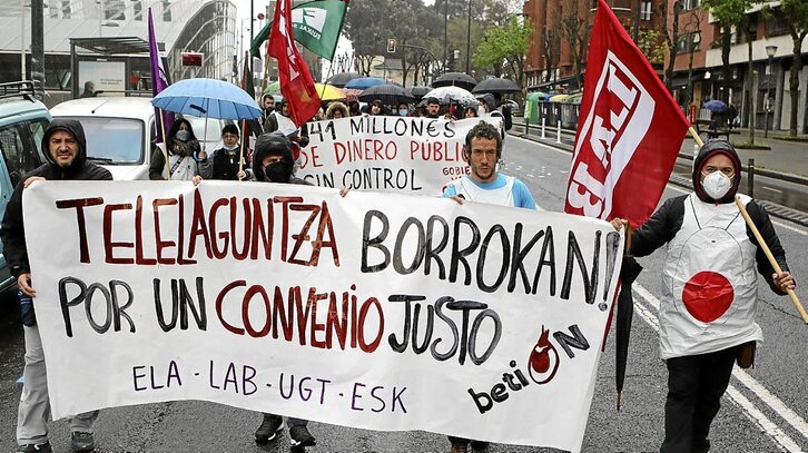 Trabajadores y trabajadoras del servicio público de teleasistencia BetiOn, propiedad del Gobierno de Lakua y gestionada por el trinomio de empresas compuesto por la británica Tunstall Televida, que cuenta con la mayor participación, el GSR del Grupo Mondragón y Grupo IMQ, han realizado ya nueve jornadas de huelga –cuatro en marzo y cinco en abril– desde que el pasado 21 de marzo, al ver bloqueadas las negociaciones con la dirección y el Ejecutivo autonómico, decidieran luchar por un «convenio digno» de esta manera.