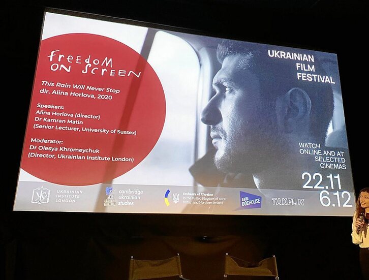 La documentalista ucraniana Alina Gorlova se va haciendo un nombre en el contexto internacional a fuerza de presentar sus películas en pequeños festivales y ganarlos. Con “Esta lluvia nunca cesará” (2020) ha triunfado, por ejemplo, en el Festival Documental de Ámsterdam, dentro de la sección First Appearance, también en el GoEast o en el de Las Palmas, donde recibió el Lady Harimaguara de Oro. Todo esto tiene mayor mérito, teniendo en cuenta que la suya no es una película fácil. No responde al perfil realista o meramente observacionista de las obras que suelen programar en las muestras de cine de derechos humanos, cuando la temática que trata se prestaba al consabido análisis político, porque ha preferido experimentar con un blanco y negro expresionista llevada por la ambición de representar la teoría del caos global a partir de los conflictos locales. Y es así como consigue anticiparse en un par de años a las actuales y generalizadas conclusiones sobre la influencia de la invasión rusa de Ucrania en el equilibrio geopolítico del resto del mundo.