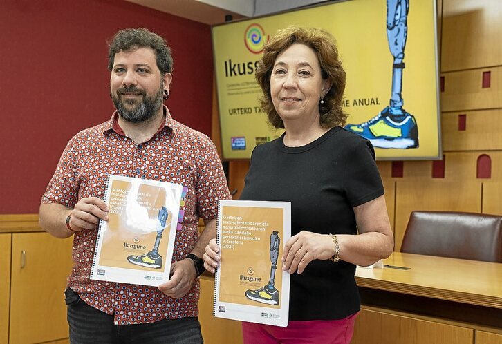 El Observatorio contra la LGTB+fobia de Gasteiz, Ikusgune, registró el pasado año 27 incidencias contra este colectivo en Araba, un 68,8% más que en 2020, cuando se dieron 16 casos, y un 170% más que en 2017, cuando comenzaron a recogerse datos sobre este tipo de hechos y se contabilizaron 10 ataques. Estos datos se extraen del quinto informe anual elaborado por este observatorio, presentado ayer por la concejala de Igualdad del Ayuntamiento de Gasteiz, Miren Fernández de Landa, y el portavoz de Lumagorri, Amets Martínez de Heredita, en vísperas del Día Internacional contra la LGTBI+fobia, que se celebra hoy.