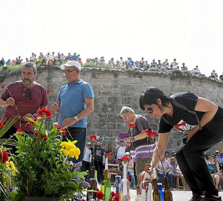 Las intervenciones en recuerdo de los fallecidos se completaron con actuaciones musicales, también con jóvenes como protagonistas, y la colocación de flores en las botellas que simbolizan a cada víctima de la cárcel fascista. El homenaje de este año ha llegado también junto a la noticia de que se cuenta ya con los permisos estatales, además del impulso presupuestario de Gobierno de Nafarroa, para rehabilitar el conocido como «Cementerio de las botellas».