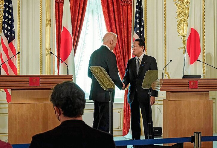 En la misma comparecencia, Biden y Kishida adoptaron un tono firme ante China y abogaron por su «visión común de (una región) indo-pacífica libre y abierta» y se comprometieron a extender su cooperación y a vigilar la actividad naval china en el mar de China Meridional donde Pekín tiene crecientes ambiciones.