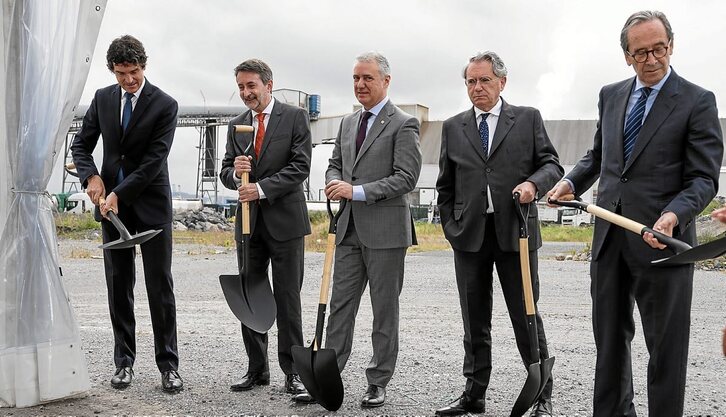 La construcción del hub de descarbonización en el puerto de Bilbo arrancó ayer con el acto formal de enterrar la primera piedra. Estará formado por una planta de combustibles sintéticos y un proyecto de valorización de residuos. Implica una inversión inicial de 103 millones de euros, por encima de los 80 millones previstos, y estará operativo en dos años. Tras el proyecto están Petronor-Repsol y Kutxabank y cuenta con el apoyo Enagás, el EVE y Aramco.