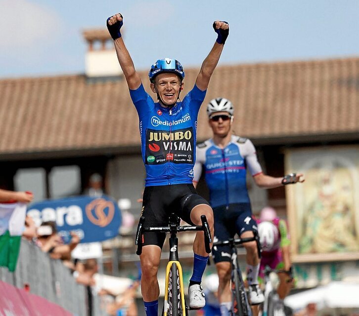 Koen Bouwman (Jumbo) logró ayer su segunda victoria en este Giro y aseguró el maillot de la montaña en la decimonovena etapa entre Marano Lagunare y Santuario di Castelmonte, de 178 kilómetros, al imponerse a sus compañeros de escapada Mauro Schmid, Alessandro Tonelli, Attila Valter y Andrea Vendrame en un final polémico.