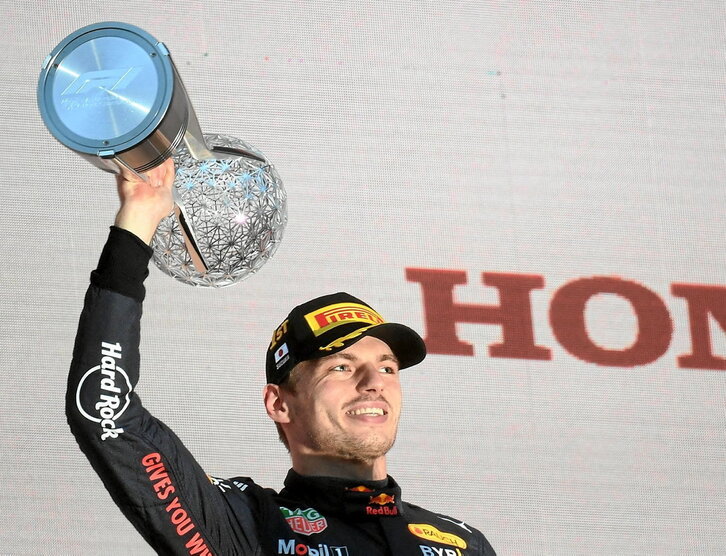 Max Verstappen (Red Bull) revalidó ayer el título de campeón del Mundo de la Fórmula Uno al imponerse en el caótico Gran Premio de Japón por delante de su compañero de equipo “Checo” Pérez y Charles Leclerc (Ferrari). No faltó confusión a la conclusión de la prueba, pues se disputaron la mitad de las vueltas pero se repartieron la totalidad de los puntos. «Está claro que es una sensación tremenda, muy alocada», explicó el neerlandés, que se ha convertido en el nuevo ídolo deportivo de los Países Bajos. «Ha sido un año increíble. Estoy muy agradecido a todo el equipo». T. KITAMURA | AFP
