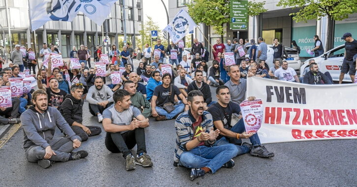 CCOO, LAB, UGT, ESK, CGT eta CNT sindikatuetako kideek Metaleko Lantegien Bizkaiko Federazioaren egoitza aurreko biribilgunean trafikoa hogei minutuz eten zuten atzo, metaleko hitzarmenaren negoziazioaren blokeo egoera salatzeko. Federazioari gogorarazi zioten hiru greba egunen atarian daudela eta, mahai gainean eduki nahikorik ez dagoen bitartean, atzoko ekintzaren antzekoak egiten eta lantegi guztietan grebak antolatzen jarraituko dutela: «Federazioak metaleko hitzarmena blokeatzen jarraitzen badu, Bizkaian ez da normaltasunik egongo».