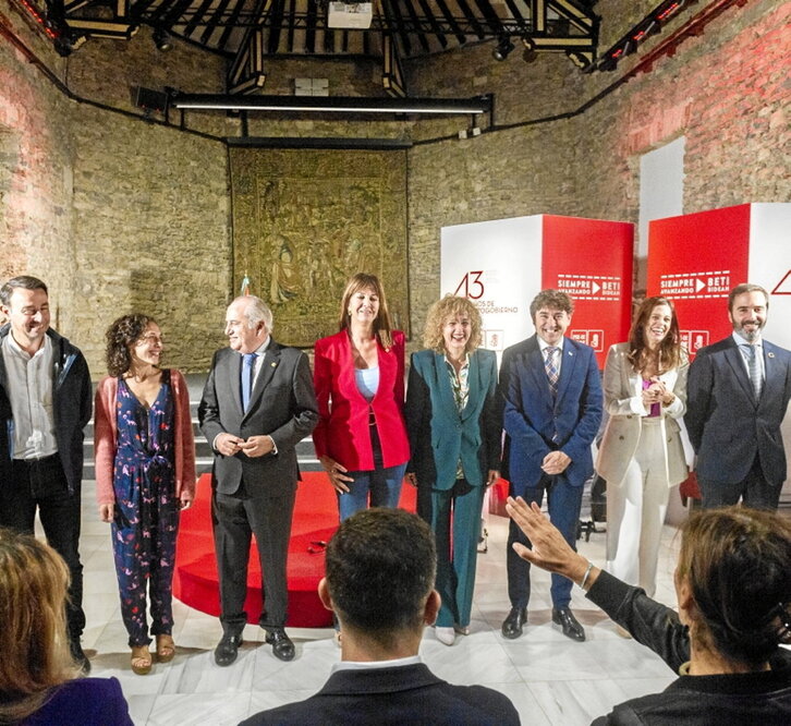 En el acto del PSE estaban la secretaria de Política Institucional de la Ejecutiva, Begoña Gil, así como responsables de las áreas de transporte y movilidad en las tres diputaciones vascas y en el Ayuntamiento de Bilbo, Rafaela Romero (Gipuzkoa), Carlos Ibarlucea (Araba), Miguel Ángel Viar (Bizkaia), y la concejala bilbaina Nora Abete. Faltó el consejero de Planificación Territorial, Vivienda y Transportes, Iñaki Arriola, que no pudo escapar del Consejo de Gobierno, no fuera que el lehendakari le pusiera falta.