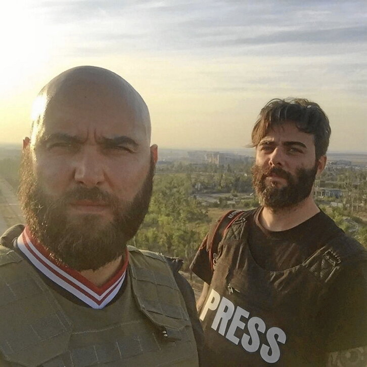 Los dos se conocen desde los tiempos del máster en Periodismo que realizaron en Bilbo y las prácticas en “El Correo”. «Cuando acabamos teníamos inquietudes similares, hicimos equipo y él se encargaba de escribir y yo de la fotografía y del video», recuerda. La última vez que pudo verlo fue unas dos semanas antes de la detención. «Todavía no he podido volver a tener contacto. Le he escrito cartas, pero no sé si le han llegado, creo que no. A mí probablemente me considerarán colaborador o algo así porque en todo lo que hizo Pablo en Ucrania yo estuve siempre con él. Me tendrán ‘fichado’. Pero sé que a su mujer sí le envió cartas manuscritas y a la madre y a una amiga de Barcelona», comenta.