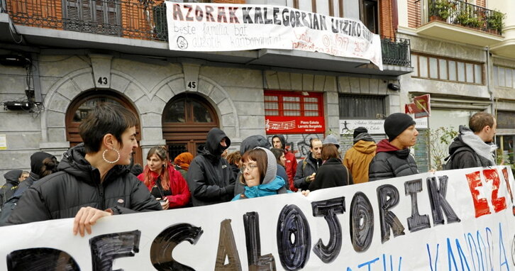 Donostiako Ategorrieta etorbideko 45. zenbakian okupatutako etxebizitza batean bizi diren lau gazte kaleratzear da Azora inbertsio funtsa. Etxegabetzeko epea atzo abiatu zen eta kanporatzea edozein unetan gerta daiteke. Atzo bertan, atari aurrean jendea bildu zen kaleratze posibleari aurre egiteko. Etxegabetze arriskuan daudenek salatu zuten Azorak ez diela beste aukerarik eskaini: «Kalera goaz». Halako egoerak onartezinak dira, eta erakunde publikoen esku hartzea ezinbestekoa da pertsona guztiei etxebizitza eskubidea bermatze aldera.