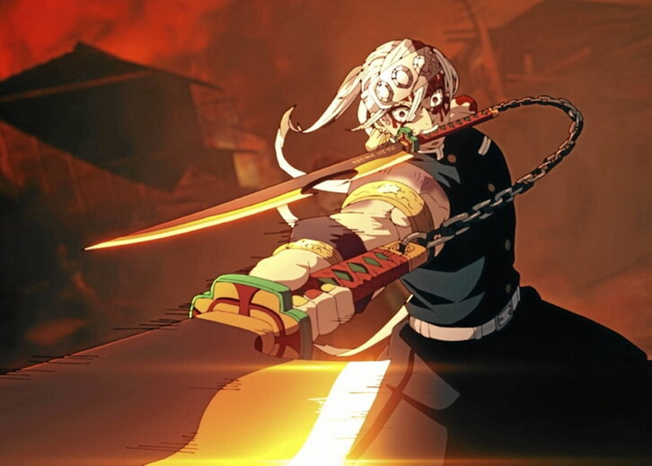 La película jamás oculta lo que es y se presenta de manera clara como una sucesión de capítulos que permiten al espectador ser partícipe de una aproximación al imaginario creado por la autora del manga original, Koyoharu Gotōge, la cual creó en 2016 esta saga que ya ha concluído y que tiene como protagonistas a los hermanos Tanjirō y Nezuko Kamado. Ambos, apoyados por sus aliados Inosuke Hashibira, Zenitsu Agatsuma y Giyū Tomioka, se enfrentan a las malvadas fuerzas de Muzan Kibutzuji.