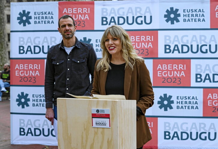 «Bagara, badugu» lelopean larunbatean Donostiako Miramar Jauregian ospatuko du Aberri Eguna Euskal Herria Batera egitasmoak. Estitxu Garai EHUko irakasleak (Gordexola, 1985) eta Ibai Zabala (Berriz, 1987) pilotari ohiak egun horren garrantzia nabarmendu dute. «Ospakizun eguna» dela azaldu dute NAIZ Irratian, baita aurrera begira jartzekoa ere.