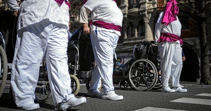 Greban dauden Bizkaiko nagusien egoitzetako langileek manifestazioa egin zuten atzo, aste honetan egin duten «Kalbarioko martxa» delakoari amaiera emanez. Aldundiak zerbitzua pribatizatu izanak 5.000 langile baino gehiagoren lan baldintzak prekarizatu eta zerbitzuaren kalitatea kaltetu duela salatzearekin batera, borrokan jarraituko dutela adierazi zuten. Pandemian azaldu zen arazoa, baina, osasun eta zaintza sistema indartsuen premiak pentsarazi zezakeenaren kontra, instituzio nagusien politikek bere horretan jarraitzen dute.