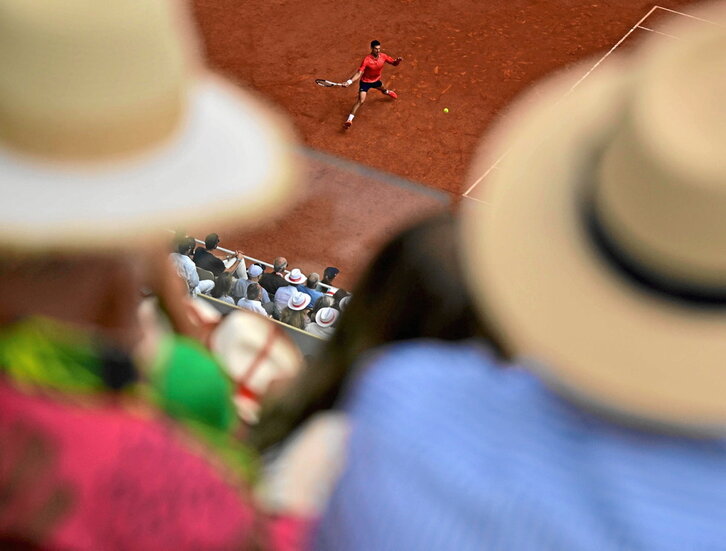 Todos miran atentos a Novak Djokovic, que devuelve un golpe de Casper Ruud en la final de Roland Garros, disputado en la mítica pista Philippe Chatrier. Con la cara protegida del sol y con los ojos bien abiertos para no perder detalle de otro capítulo de la historia del tenis, en el que el serbio es el protagonista, labrando, golpe a golpe, su camino hacia el vigesimotercer título de Grand Slam, alcanzando la marca de Serena Williams, colocándose a uno de los 24 de Margaret Court y convirtiéndose en el tenista masculino más laureado de la historia.
