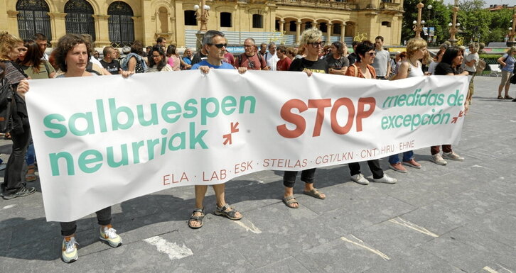 ELA, LAB, ESK, Steilas, CGT/LKN, Hiru eta EHNE sindikatuek elkarretaratzea egin zuten atzo Donostian euskal preso politikoen eskubideen alde. Azken bi urteotan egindako urratsei balioa eman zieten, eta aldaketa horiek gizarte aktibazioari eta alderdien, sindikatuen eta erakundeen akordioari eta batasunari esker gertatu direla nabarmendu zuten. Horregatik, ezinbestekotzat jo zuten akordio eta aktibazio bidea garatzen jarraitzea, salbuespenezko legeriarekin amaitzeko eta gradu progresioaren blokeoarekin behin betiko amaitzeko. Ez zaie arrazoirik falta.